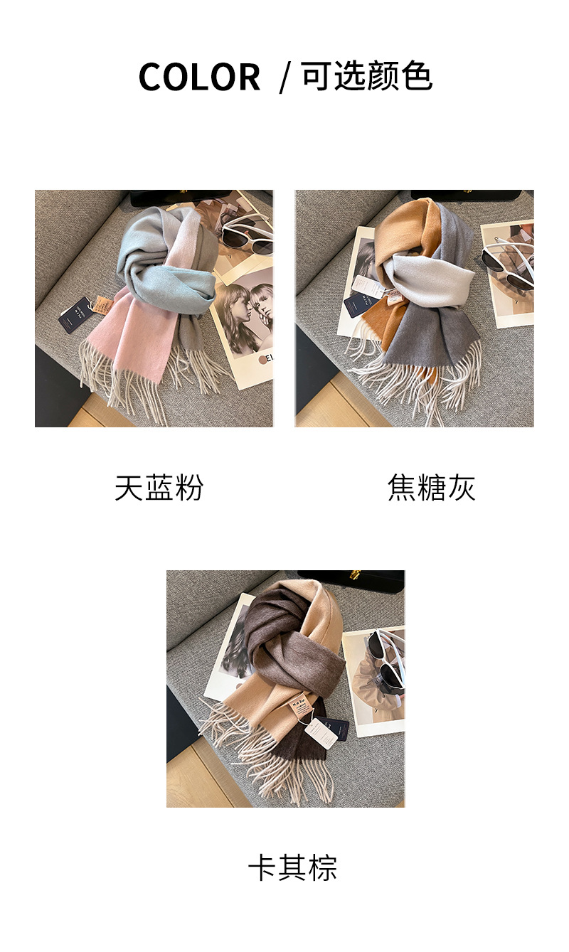 100% Pure Cashmere Scarf For Women Autumn Winter Albas Light Luxury Gradient Water Ripple Thermal Shawl Gift