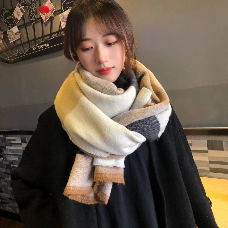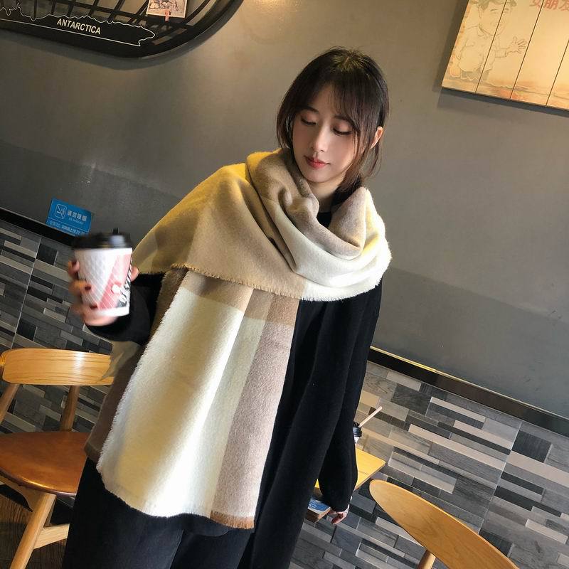 New Korean Version Of Large Plaid Imitation Cashmere Scarf Women Fashion Elegant Everything Warm Thick Cashmere Shawl Wholesale